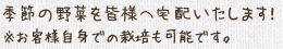 綿松ハウジングの畑で栽培した季節の野菜をOBのお客様に無料でお届けしています。