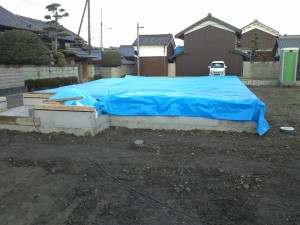 明日の雨に備えて養生シートを
