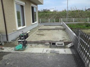 外構工事3日目、車庫部分の土間打ち準備