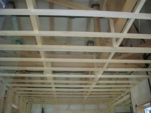内部天井下地野縁の加工。