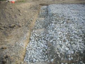 この後、クラッシャを転圧してメッシュ筋を敷いて